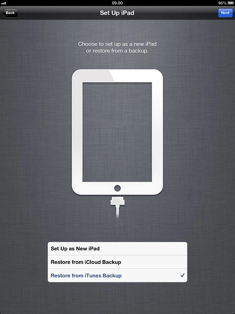 If you've used an iPad before and want to restore previous content from an iTunes backup: