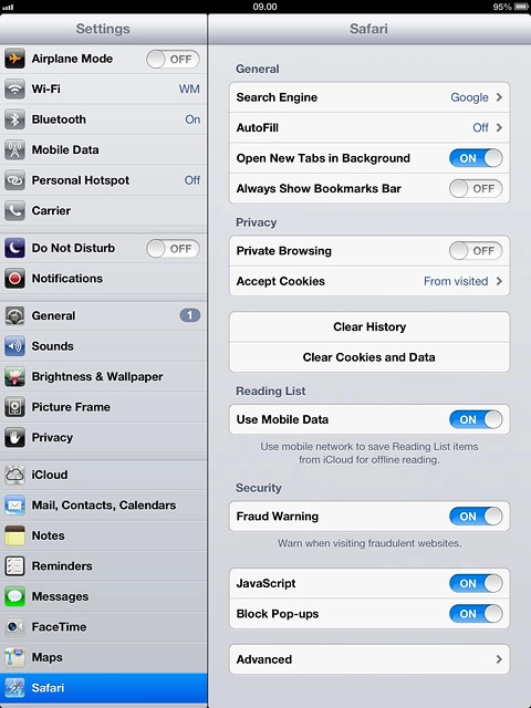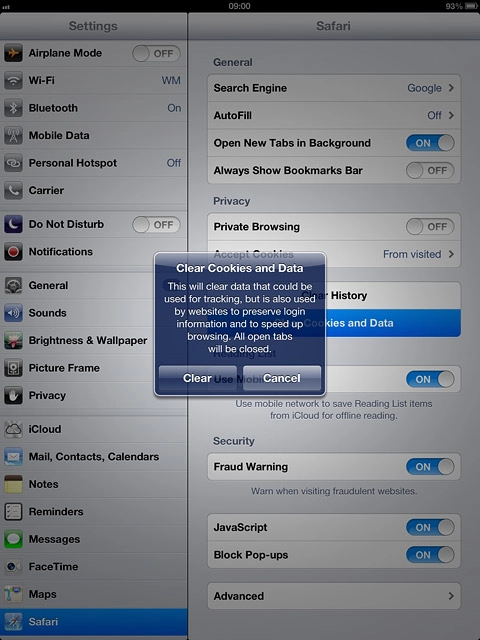 Clear browser data - Apple iPad (4th generation) (iOS6)