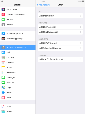 Press the required email account and follow the instructions on the screen to select settings for the specific account.