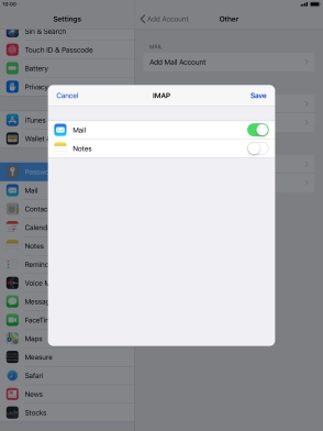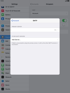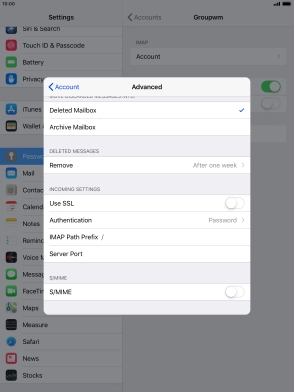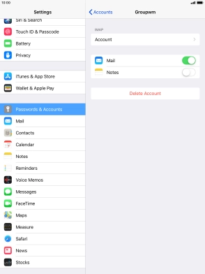 Press the required email account and follow the instructions on the screen to select settings for the specific account.