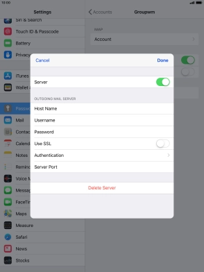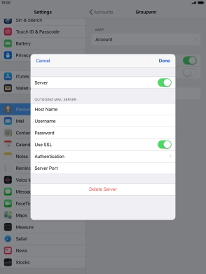 Press Password and key in the password for your email account. Please note that if you're using Vodafone's outgoing server, leave the password field empty.