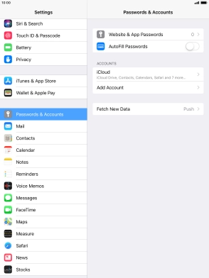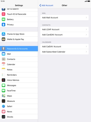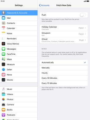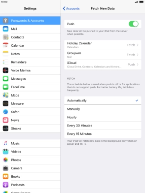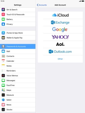 Press the required email account and follow the instructions on the screen to select settings for the specific account.