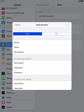 Press Password and key in the password for your email account.