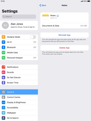 When you use this method, all app settings and data are saved in the tablet memory and are restored when you reinstall the app from App Store on your tablet.