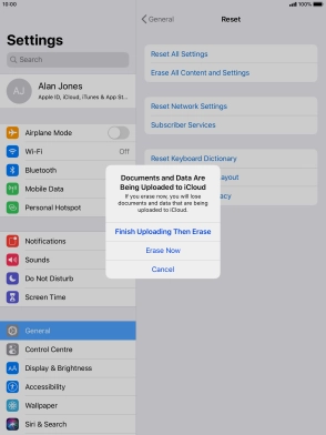 Key in the password for your Apple ID and press Erase. Wait a moment while the factory default settings are restored. Follow the instructions on the screen to set up your tablet and prepare it for use.