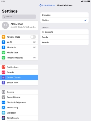 Press the required setting to select which contacts can call you even though Do Not Disturb is turned on.