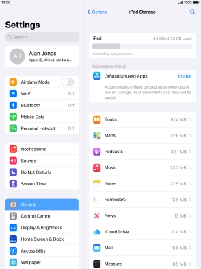 Press iPad Storage.