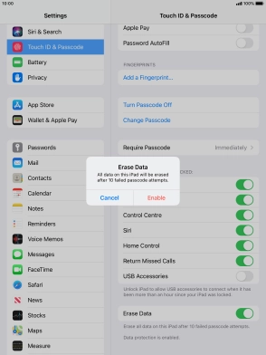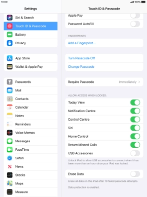 Turn use of lock code on your Apple iPad (5th generation) iPadOS 14.0 on or off