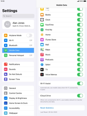 Press the indicator next to "Wi-Fi Assist" to turn the function on or off.