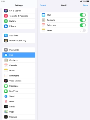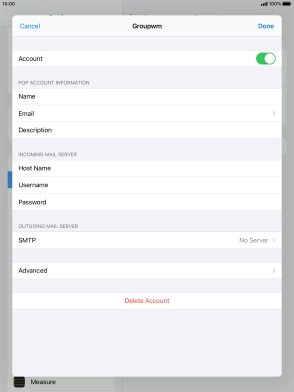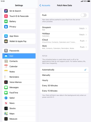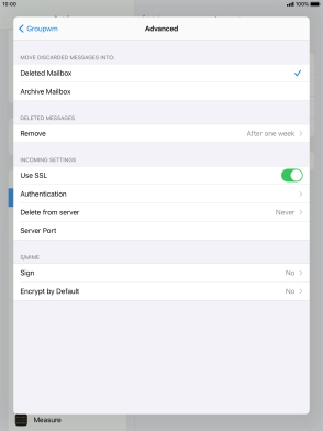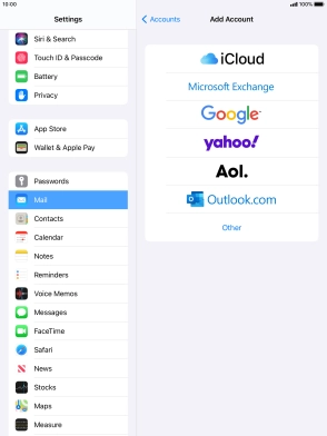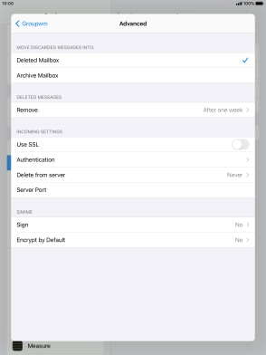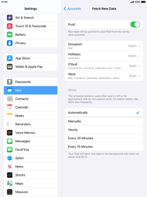 Press the required email account and follow the instructions on the screen to select settings for the specific account.