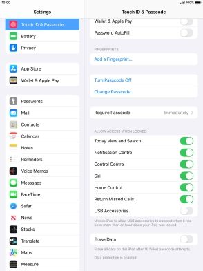 Press Turn Passcode On and key in a lock code of your own choice twice.