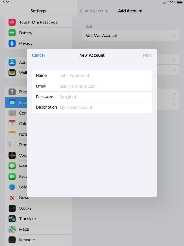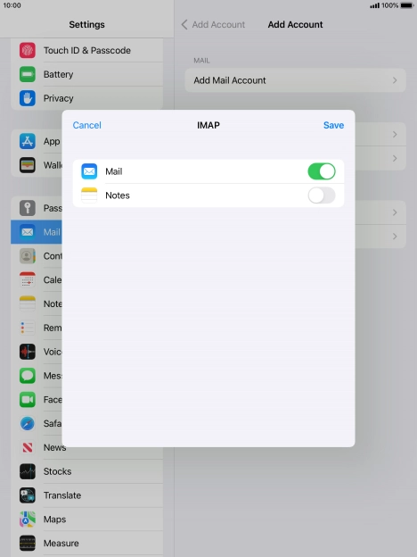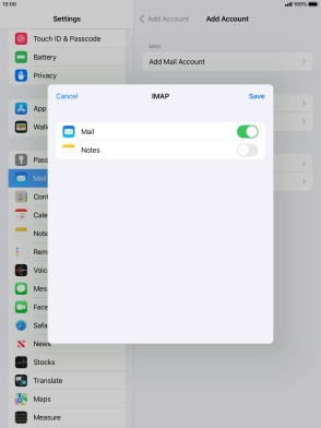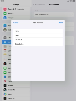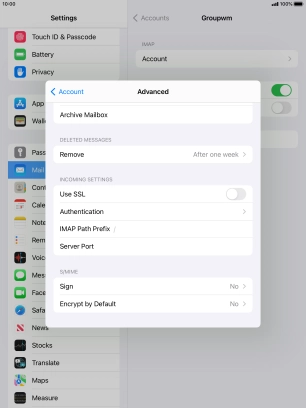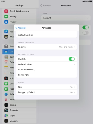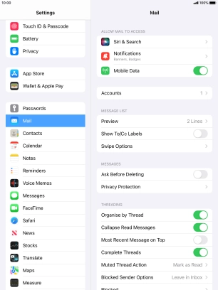 Press the required email account and follow the instructions on the screen to select settings for the specific account.