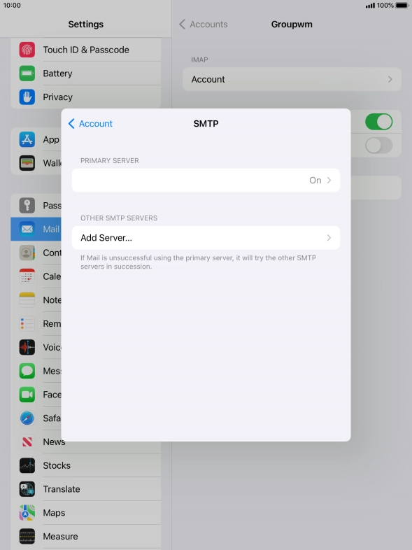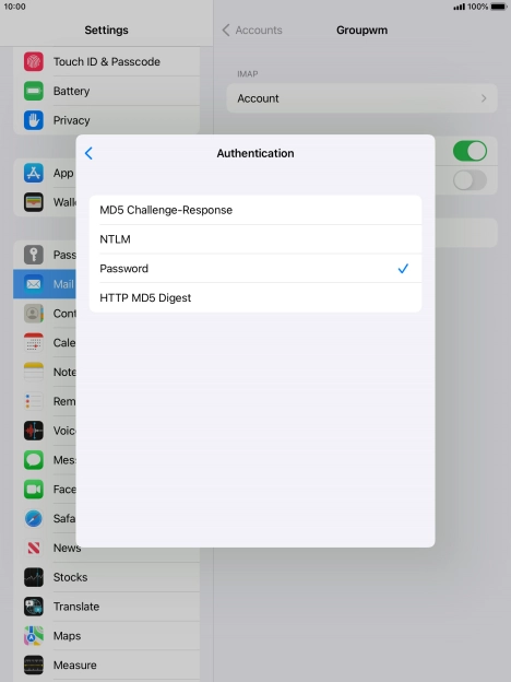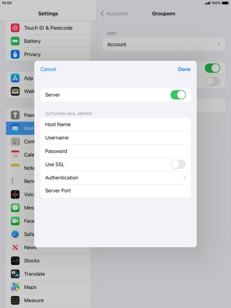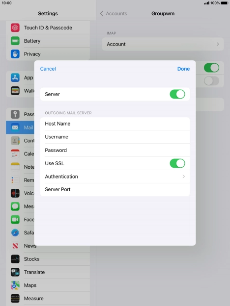 Press Password and key in the password for your email account. Please note that if you're using Vodafone's outgoing server, leave the password field empty.