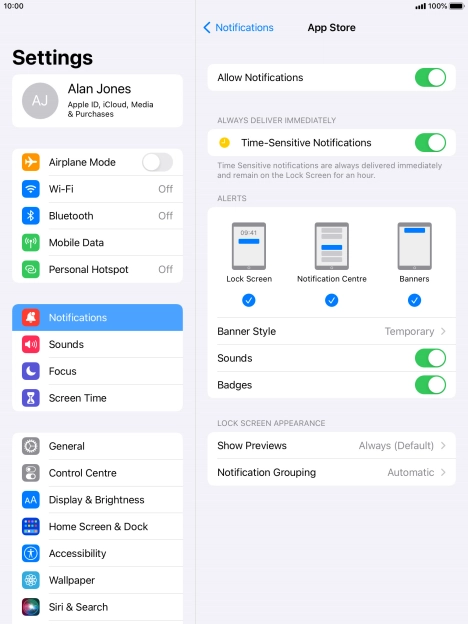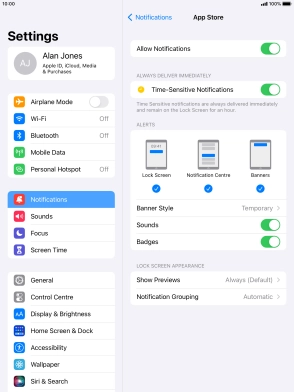 Press the indicator next to "Time-Sensitive Notifications" to turn the function on or off.