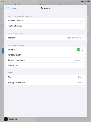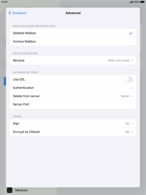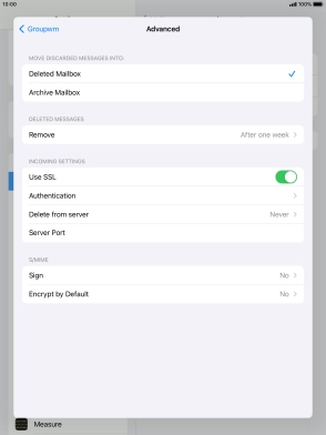 Press the required email account and follow the instructions on the screen to select settings for the specific account.