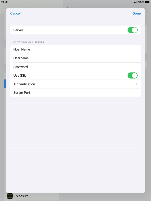 Press Password and key in the password for your email account. Please note that if you're using Vodafone's outgoing server, leave the password field empty.