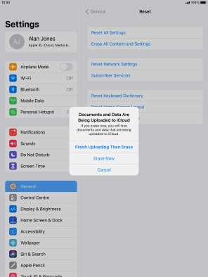 Key in the password for your Apple ID and press Erase. Wait a moment while the factory default settings are restored. Follow the instructions on the screen to set up your tablet and prepare it for use.