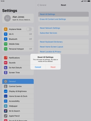 If you choose to restore settings and data, settings, contacts, audio files, video clips and appointments are deleted. When you've restored settings and data, you need to activate your tablet.
