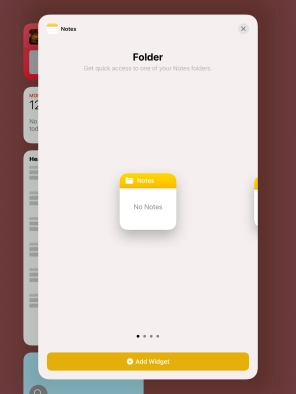 Slide your finger right or left on the screen to select the required widget size.