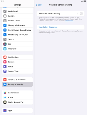 Turn Sensitive Content Warning on your Apple iPad (8th Generation) iPadOS 18 on or off