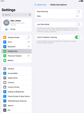 Turn low data usage on your Apple iPad (8th Generation) iPadOS 18 on or off