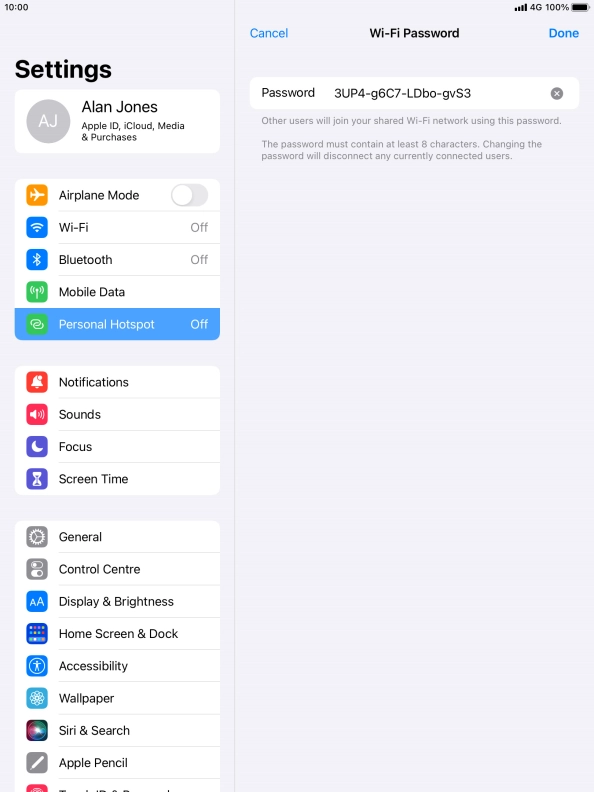 The password prevents others from accessing your Wi-Fi hotspot without your approval.