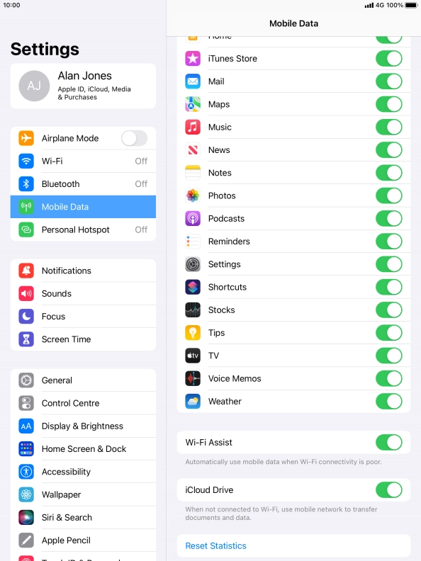 My Apple iPad (9th Generation) iPadOS 15.2 uses a large amount of mobile data