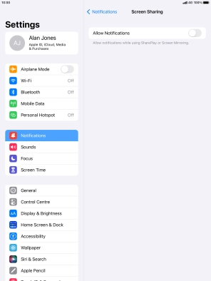 Press the indicator next to "Allow Notifications" to turn the function on or off.