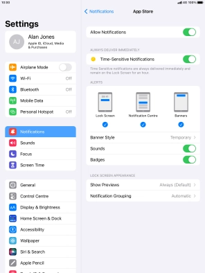 Press the indicator next to "Time-Sensitive Notifications" to turn the function on or off.