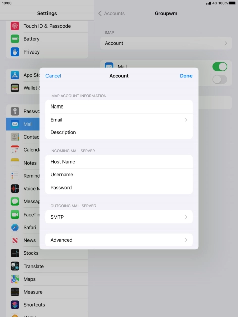 I can't send and receive email messages on my Apple iPad (9th Generation) iPadOS 15.2