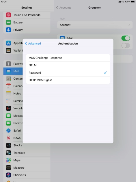 Press Password and key in the password for your email account.