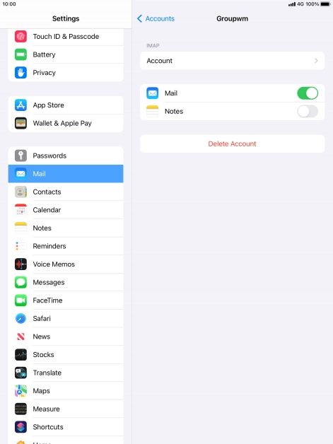 Press the name of the email account you've just set up.