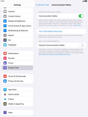 Press the indicator next to "Communication Safety" to turn the function on or off.