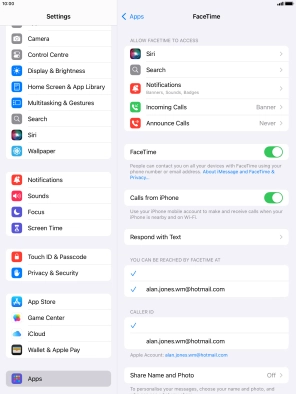 You can make a video call to another device which supports FaceTime. To select settings for FaceTime, you need to activate your Apple ID on your tablet.