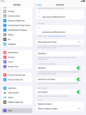 Press the required setting below "YOU CAN BE REACHED BY FACETIME AT".