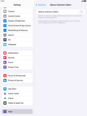 Select FaceTime settings on your Apple iPad (9th Generation) iPadOS 18