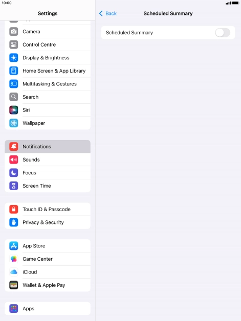 Press the indicator next to "Scheduled Summary" to turn on the function and follow the instructions on the screen to set the notification summary.