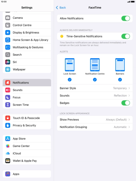 Press the indicator next to "Time-Sensitive Notifications" to turn the function on or off.