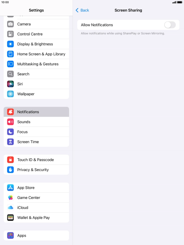4 Turn notifications during screen sharing on or off