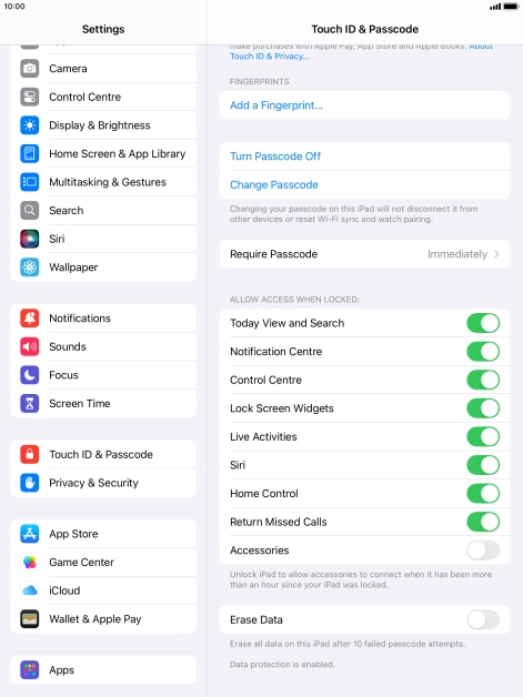 When the lock code is turned on, it needs to be entered every time you turn on your tablet.