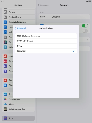 Press Password and key in the password for your email account.