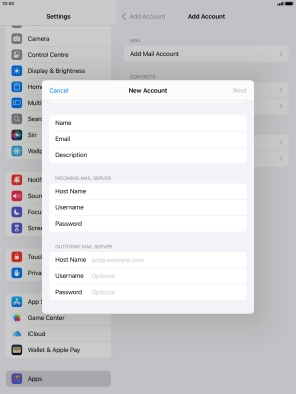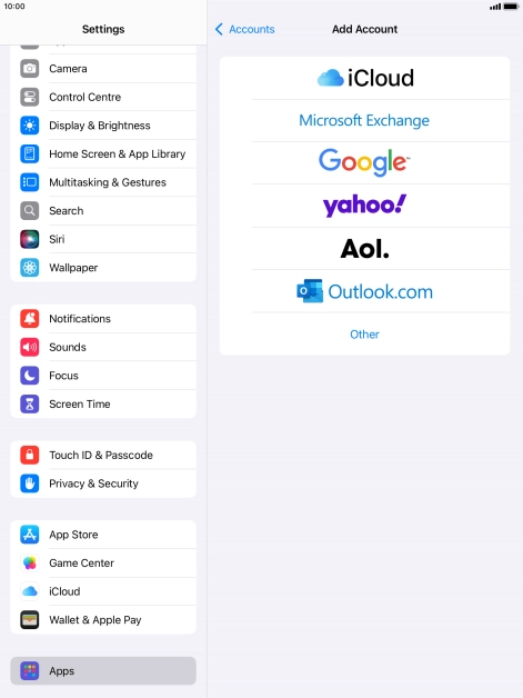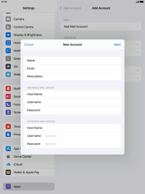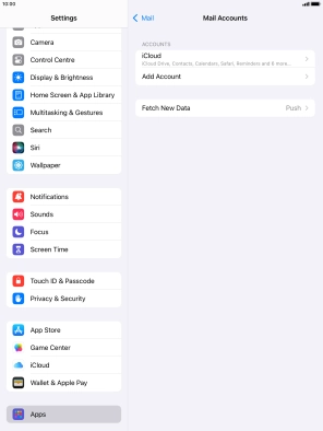 Press the required email account and follow the instructions on the screen to select settings for the specific account.