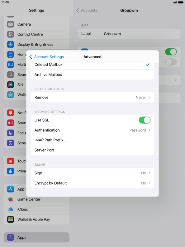I can't send and receive email messages on my Apple iPad (9th Generation) iPadOS 18