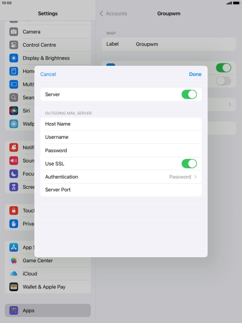 Press Password and key in the password for your email account. Please note that if you're using Vodafone's outgoing server, leave the password field empty.