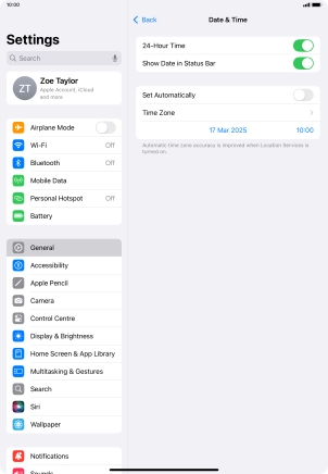 Set date and time on your Apple iPad (A16) (2025) iPadOS 18