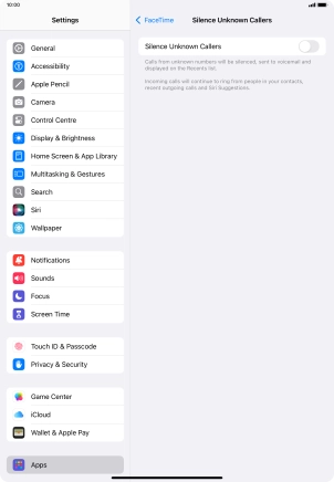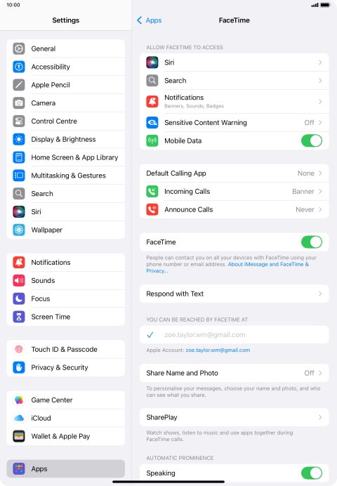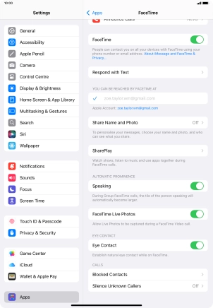 Select FaceTime settings on your Apple iPad (A16) (2025) iPadOS 18