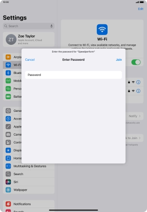 Press the required Wi-Fi network and key in the password for the Wi-Fi network.