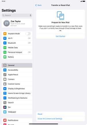 Press Transfer or Reset iPad.