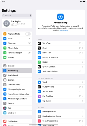 Select accessibility settings on your Apple iPad (A16) (2025) iPadOS 18