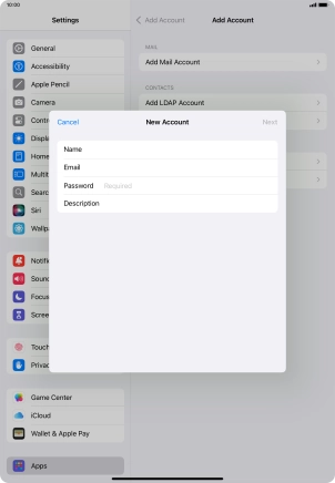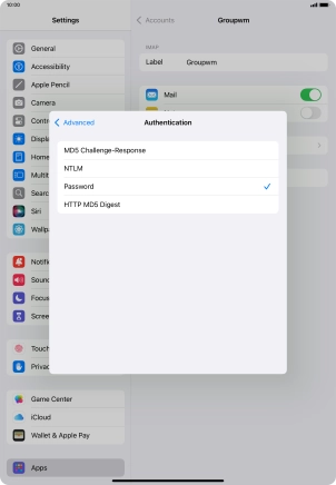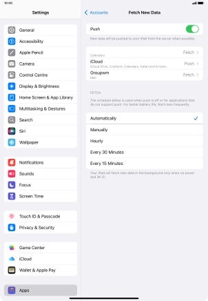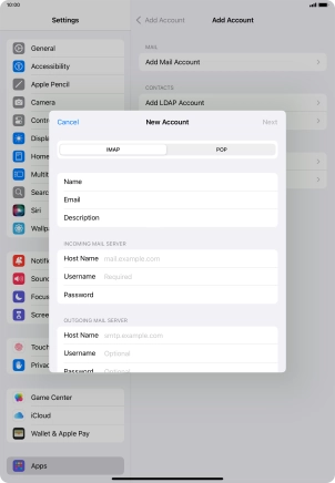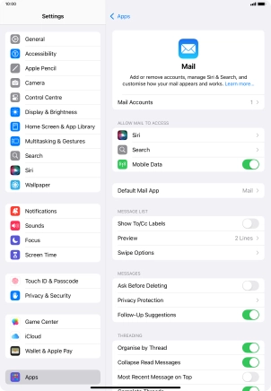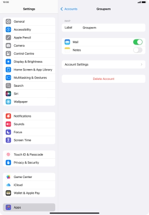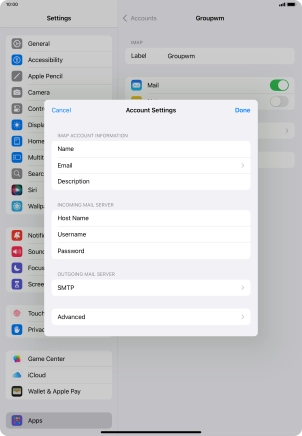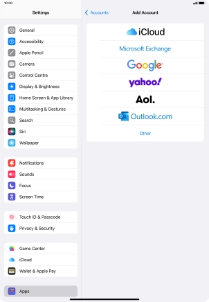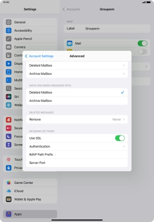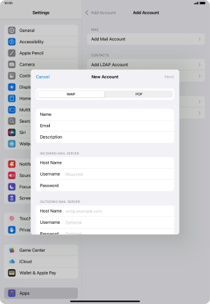 Press the required email account and follow the instructions on the screen to select settings for the specific account.